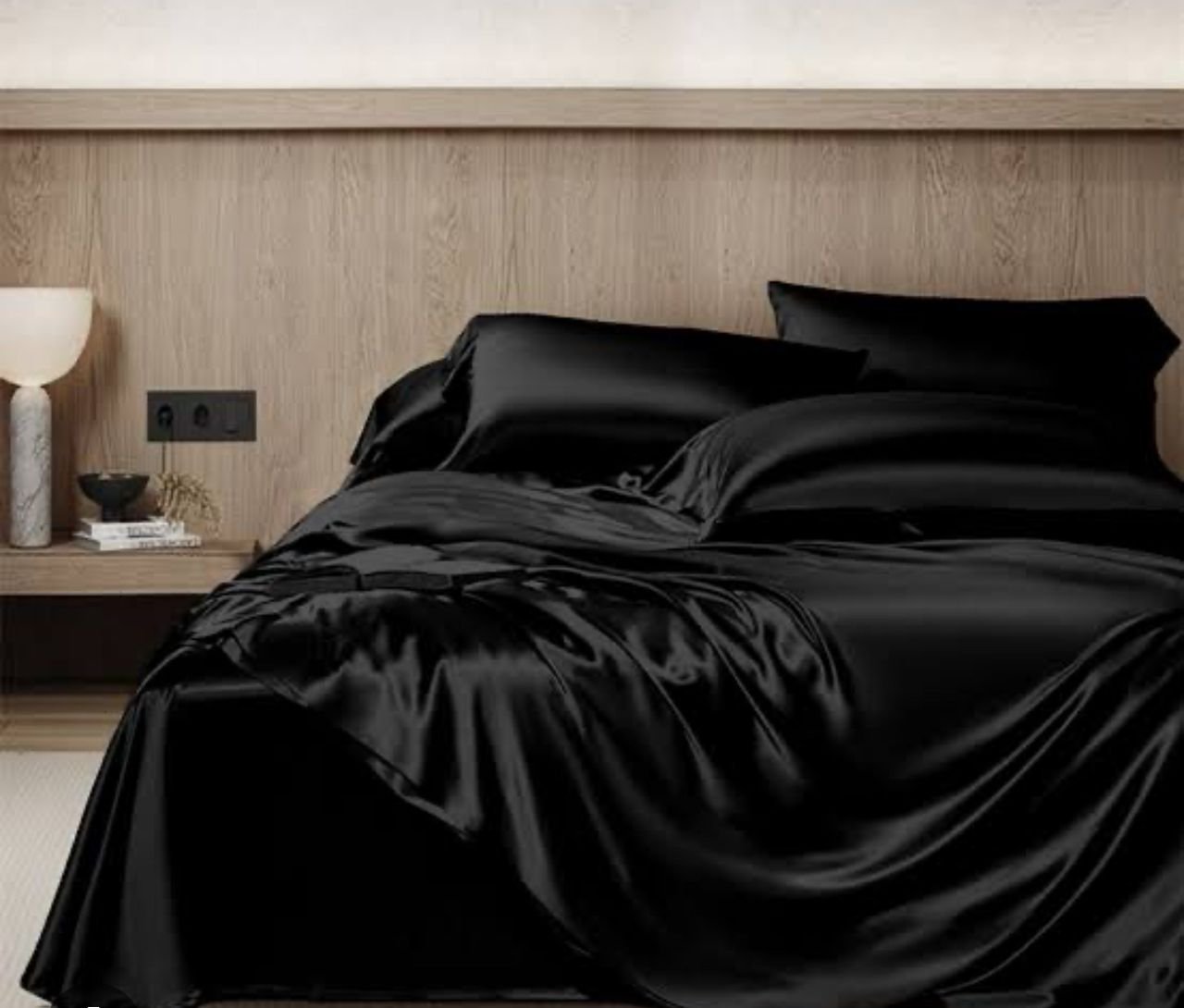 Our 6×6 plain black color friendly American stock bedding set.
